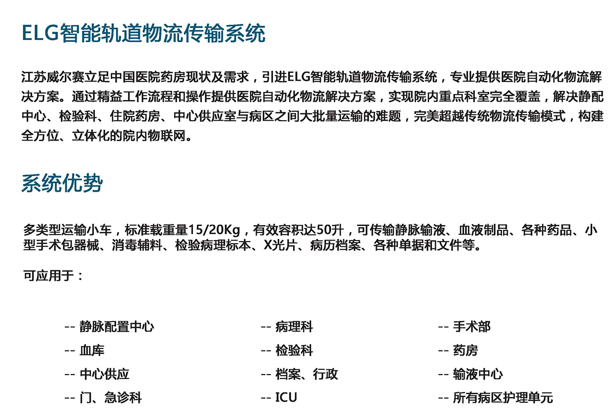 威尔赛ELG智能轨道物流传输系统