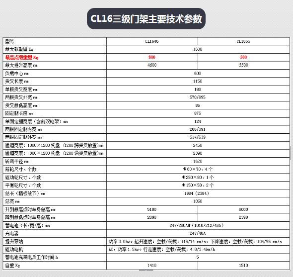 托盘堆垛车 CL16三级门架(G系列)