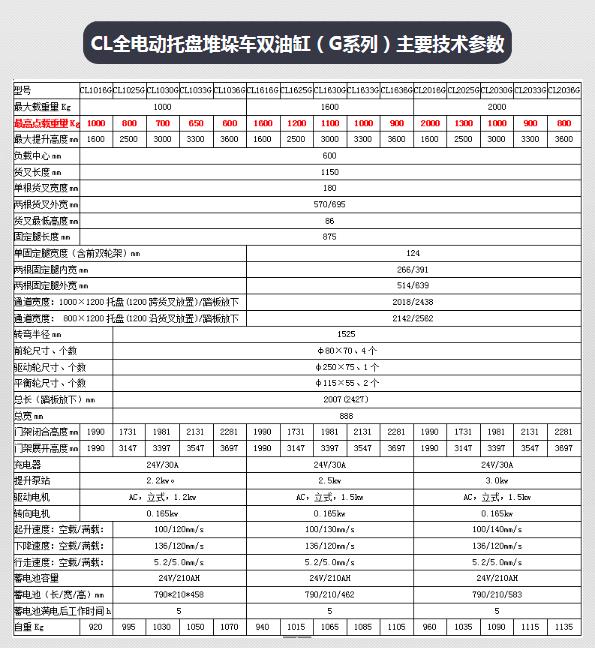 加力托盘堆垛车 CL全电动托盘堆垛车双油缸(G系列)