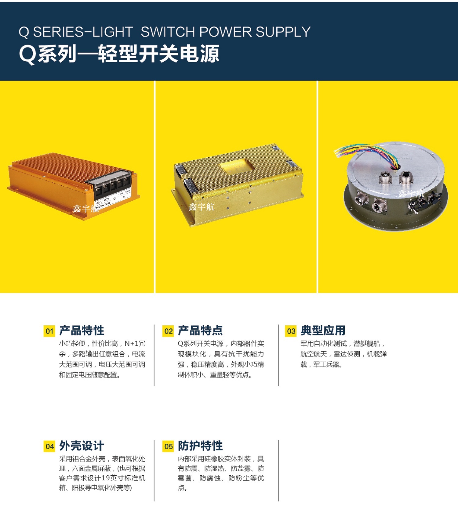 小巧轻便,性价比高,N+1冗Q系列开关电源,内部器件实军用自动化测试,潜艇舰船余,多路输出任意组合,电流现模块化,具有抗干扰能力航空航天,达侦测, 机载弹大范围可调,电压大范围可调强,稳压精度高,外观小巧精载,军工兵器。和固定电压随意配置。制体积小、重量轻等优点。采用铝合金外壳,表面氧化处内部采用硅橡胶实体封装,具理,六面金属屏蔽, (也可根据有防震、防湿热、防盐雾、防客户需求设计19英寸标准机霉菌、防腐蚀、防粉尘等机箱、阳极导电氧化外壳等)。