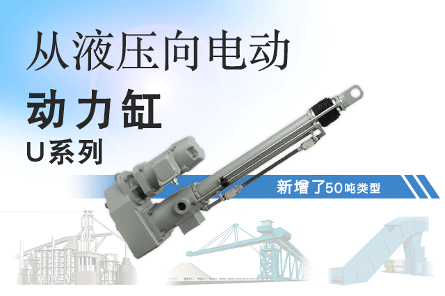 不使用液压和空压,操作简单。缸体部分采用螺杆和螺母结构,高性能,运行稳定。 各个系列内置安全装置,在超负载的时候可准确启动。 2020.11.01 2020.01.01 2019.10.01 2019.10.01 扩大机型,定格推力50吨机型可对应内径250mm为止的油压动力缸。 使用动力缸替换液压缸的利点... 椿本动力缸,结构紧凑,易于控制维修,广泛用于各个行业。与液压动力缸不同,无需液压泵来保持推力,可将用电量降至1/5,有助于削减成本。 LCA认定的节电效果和成本效益 动力缸与液压·空压设备相比,大幅削减用电量,取得了LCA (生命周期评估)的认定节电效果。 设置·维修简便 电动化系统构成简单,设置维修也简便。仅需连接驱动电源线,无需液压配管,不存在本体和配管的漏油风险。 控制简便 不受安装方向和运行方向的影响,可按照一定的速度运行。使用止动电机,在保持负荷时不使用电力,节省能源,消除停电时的下落事故的风险。 介绍最适于替换液压缸的椿本电动动力缸。 推力6吨以上的电动动力缸 U系列特辑 与液压缸极其相似的电动动力缸 蜗轮系列特辑 ※移动至椿本技术信息页面 TT-net。 可使用网上的推力计算,将液压缸的输出力换算为动力缸概略推力。 >>详细 可从动力缸定格推力图中选择客户的配适系列,并表示产品的详细内容。 >>详细 介绍动力缸在各种用途的应用事例。 >>详细 产品名・特点 与现有产品推力相同,小型轻量,适用于替换定格推力6吨以上的液压缸,简化装置。 大推力・50吨 可用于替换液压缸 使用寿命长 与现有产品推力相同,小型轻量。最适于使用一台电机同步运行复数台动力缸的场合。 大推力・32吨 同步运行 使用寿命长 使用AC交流电源,中等推力的动力缸。可选择附带推力检测器,检知过载,保护设备。 中等推力・4吨 可对应特殊电机 最适于使用一台电机同步运行数台动力缸的场合。可选择附带推力检测器,检知过载,保护设备。 中等推力・4吨 同步运行 最大推力类型的动力缸,适于替换液压缸。采用高精度蜗轮和高效率滚珠丝杆,与液压缸的尺寸相同。 大推力・50吨 低速·低频度运行 低噪音 可使用AC交流电源的小推力动力缸。可根据用途选择螺杆的种类。 小推力・306kgf 可对应特殊电机 配线简单 DC(电池)电源驱动用的小推力动力缸。购入AC适配器(选项)也可使用AC电源。 小推力・612kgf 轻量 ·小巧 最大限度发挥伺服电机的性能,高速 ·高精度运行。 1.5吨 333mm/s 停止精度高 最适于使用空压缸进行2点间运行的用途。附带电流检测式自我完结功能。 小推力・102kgf 按停·自我完结功能仅需简单配线即可使用的直线作动机。(电动动力缸)