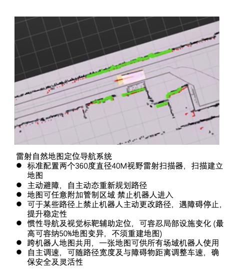 | 雷射自然地图定位导航系统 | 2D/3D 视觉系统 |