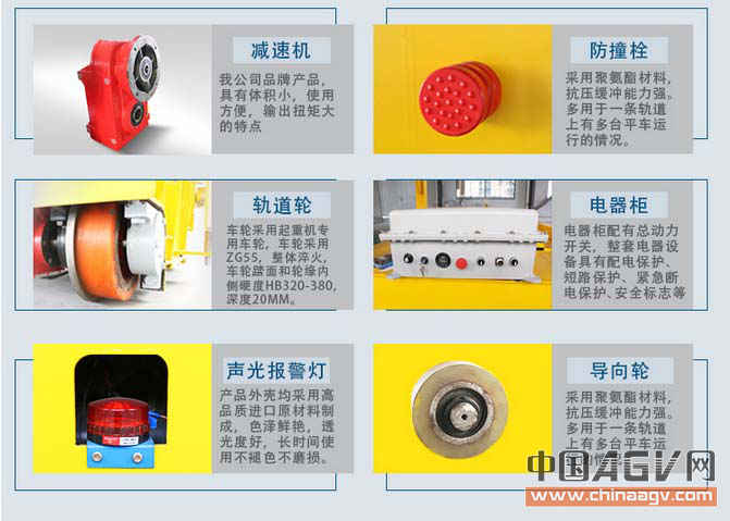 3.定位方式:读码器+条码/二维码定位。供电方式:低压轨道供电。轨道采用地面铺设轨道。车轮单耳铸钢轨道轮。