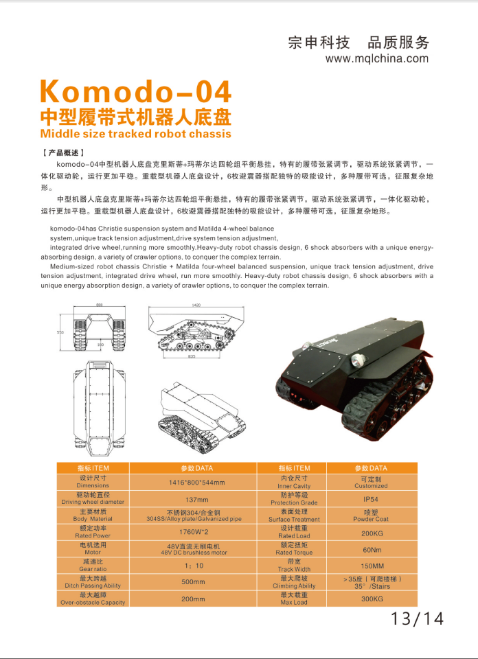 宗申液压 机器人底盘K-04 履带底盘
