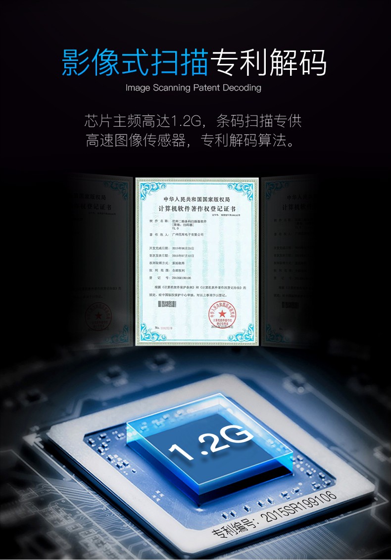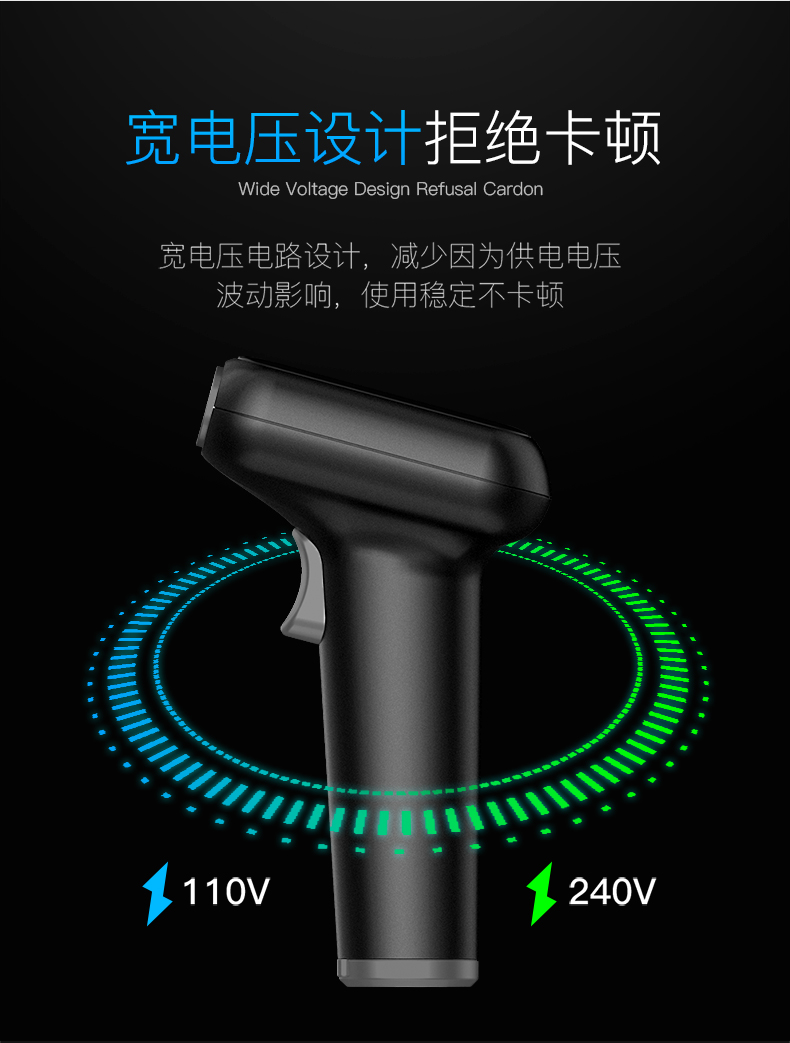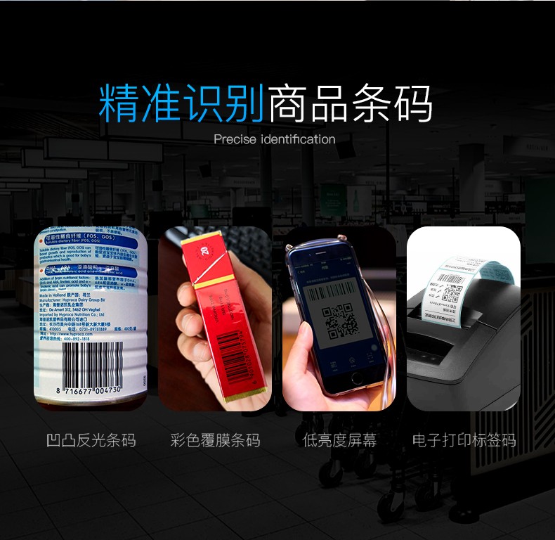 高速二维码扫描枪,轻松识别高密度长条码、PDF417二维码,手机支付,即插即用,方便快捷;包教包会,7*12小时原厂专业技术支持,快速迭代;支持在线升级,版本迭代;宽电压设计,解决不稳定的行业难题;适用多种扫码类型,广泛应用于超市、便利店、商场百货、零售店、餐饮等;扫码收银,快速识读,精准识别商品条码,凹凸反光条码,彩色覆膜条码,低亮度屏幕,电子打印标签码;自感应扫描,解放双手,只需将条码靠近扫描枪,便可自动唤醒读取,无需进行按键扫描,节能省时;支持扫描中文二维码,输出中文信息,广泛适用于医药、物流等行业;高密度一维长条码轻松识别,解决行业难题,快速识别货物流通单,长达50位一维条码,电子高密度一维码;条码速度灵敏精确,扫码速度达到2.6m/秒,扫码快人一步;兼容多种操作系统,兼容收银软件和进销存软件;影像白光补光无惧黑夜,大角度远距识别,宽电压设计,拒绝卡顿。