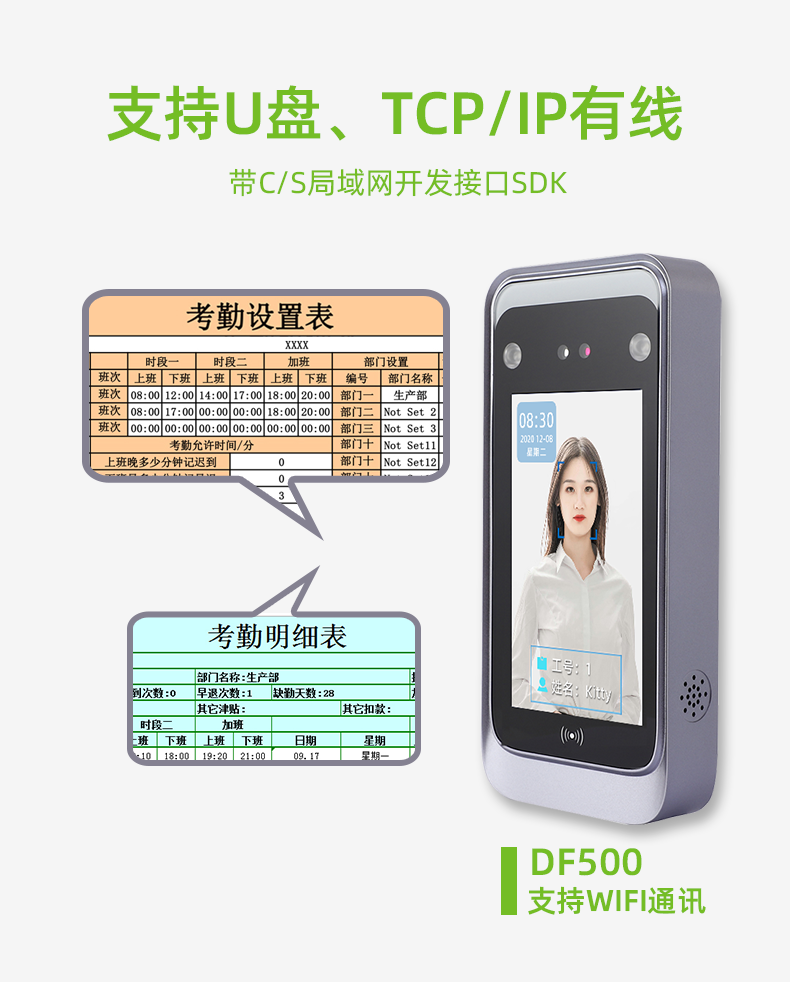 双模报表输出,支持 U 盘导出考勤报表,支持后台软件统计考勤报表;