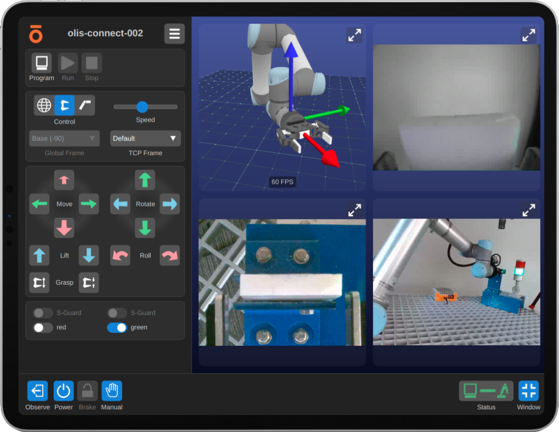 Olis Connect 是一个集成的硬件/软件解决方案,可以直接在浏览器中远程操作机器人。凭借其低延迟视频输入和直观的手臂控制,Olis Connect 超越了使用现有远程桌面/VNC 技术的可能性。通过消除现场支持的限制,远程操作降低了运营成本,提高了设备利用率并提高了利润率。