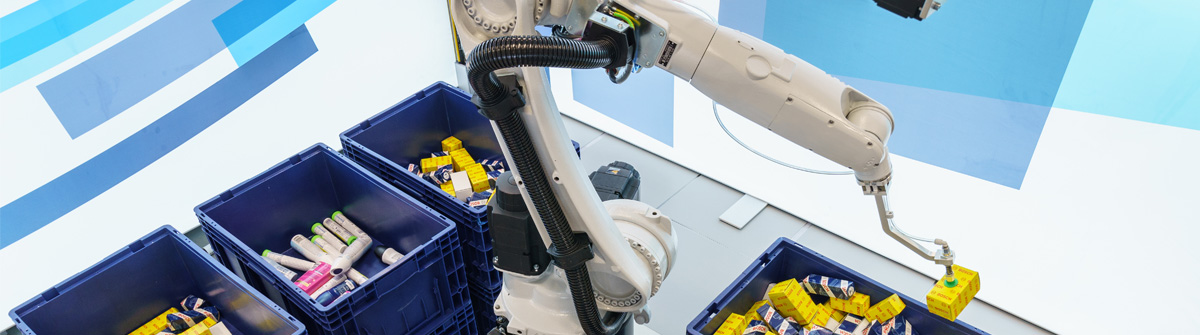 支持 AI 的机器人针对单件物品拣选进行了优化。得益于智能视觉系统,它可以独立识别容器中未分类物品的位置,将它们捡起并将它们放入订单容器或运输纸箱中。因此确保了无故障的“拣选”。该技术用途广泛,因为机器人使用自学习算法来不断改进其任务。