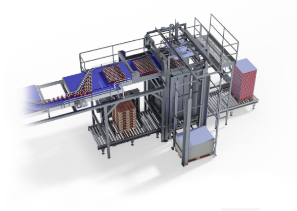 通过垂直托盘移动系统推动整层产品的自动卸垛机。从上方进行的产品卸载允许达到非常高的生产速度。
