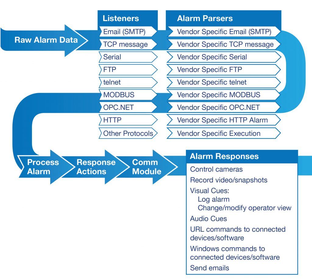 IVC 的软件套件包括复杂的警报管理,以集成其他必要的组件,例如访问控制、照明控制、视觉和音频警报通知、过程元素以及第三方和定制硬件和软件。