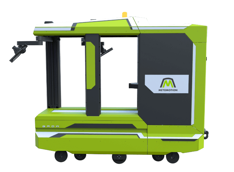 MetoMotion 自主温室机器人工人驾驶穿过温室,使用配备 LiDAR 安全传感器的先进驱动系统,根据预定义(或种植者设置)的成熟度设置仔细选择和采摘番茄。