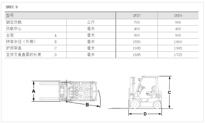 丰田:电动四轮平衡重叉车 3FB7.9