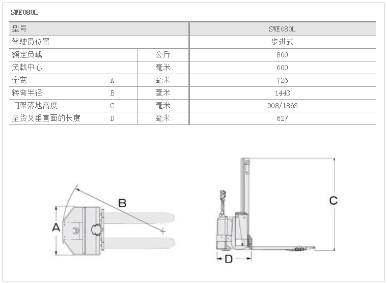 丰田 轻中型工况:STAXIO系列电动堆高机 SWE080L