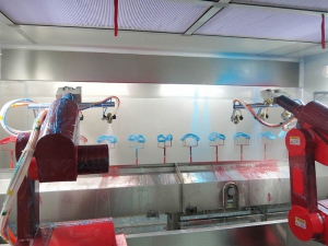 4.喷涂机器人可以同时喷涂2--5种不同的产品,一台抵多台。