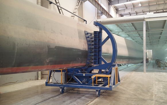 3) 一体式托辊座可随叶片扭转程度自动适应旋转角度;