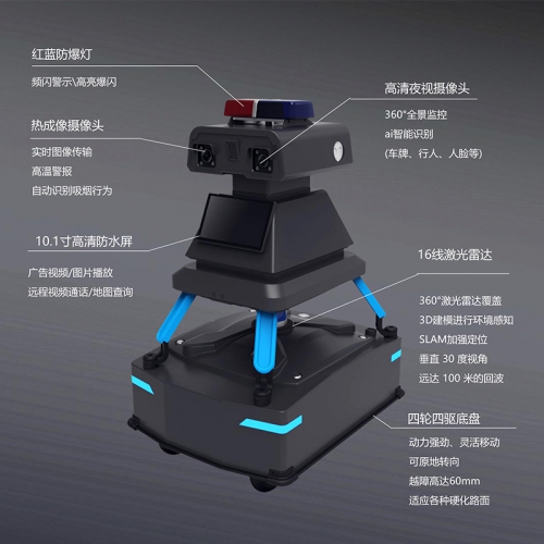智能巡检机器人室外安防巡逻自动监测执勤警务语音对话巡查机器人