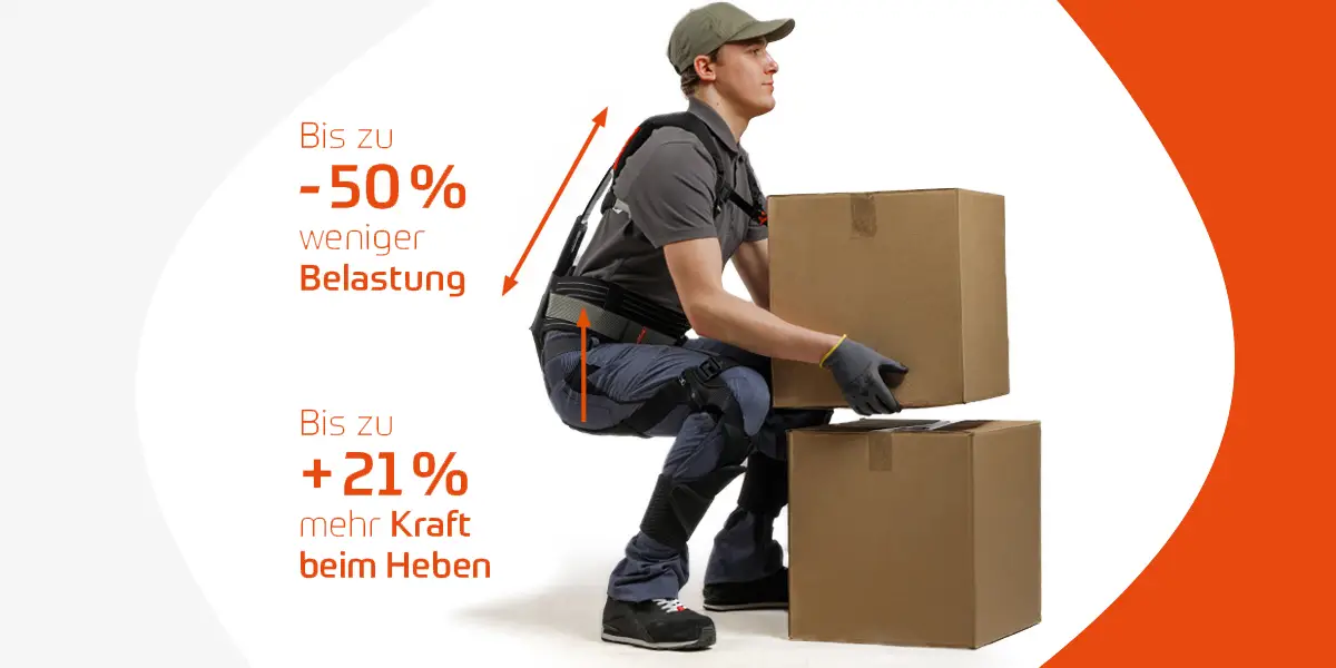 SoftExo Lift优化了提升时的工作姿势,从而有效地将作用在背部的力减少了50%,同时分配了力。