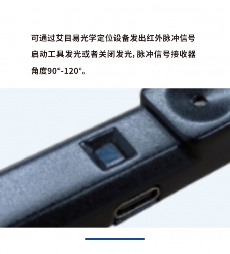 可通过艾目易光学定位设备发出红外脉冲信号启动工具发光或者关闭发光,脉冲信号接收器角度90°-120°。
