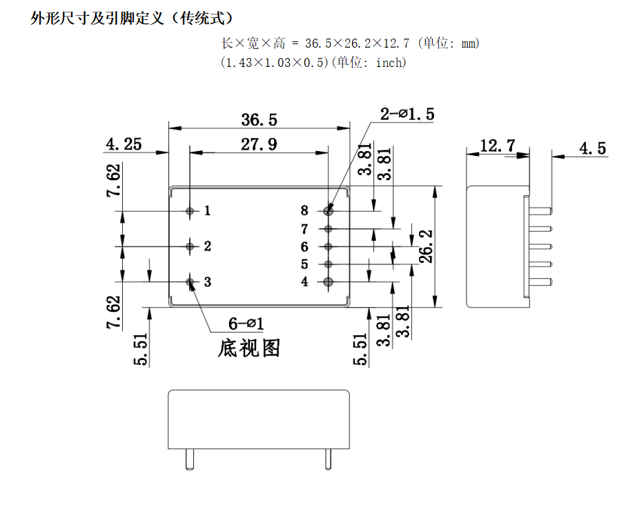 输入欠 压保护 | 欠压关断电平 | 6.5 | 7.5 | 8.5 | Vdc | 输出满载 |