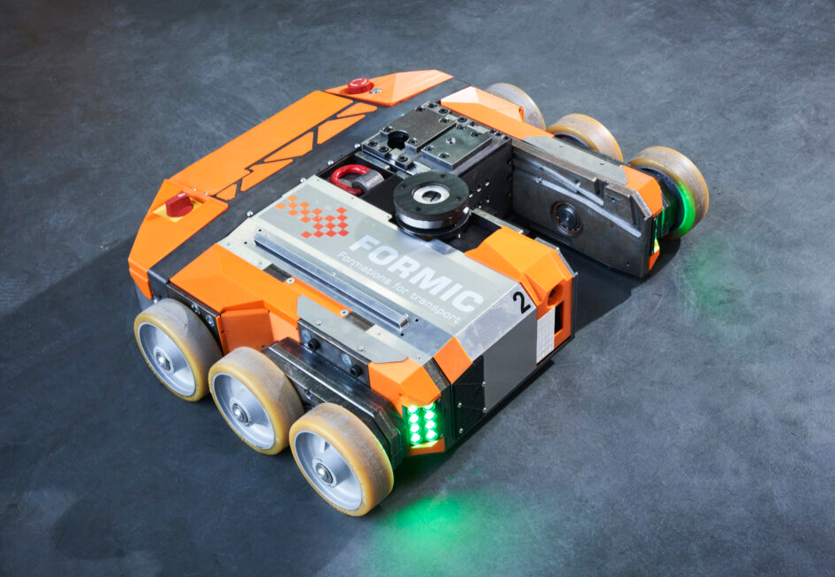 通过FORMIC25,我们目前正在开发用于协调提升和移动重物的运输模块,每个模块的负载能力为2.5吨。最多 15 个模块可以相互连接,并由一个人远程操作。系统负载高达37.5吨。