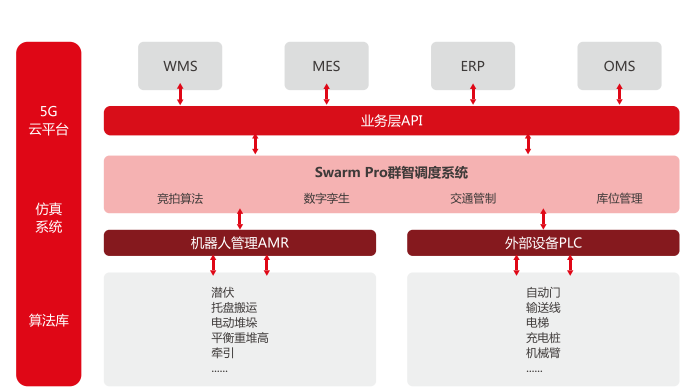 Swarm Pro群智调度系统专为协调多机器人联合作业而设设计,支持服务器安装且支持直接安装在车载控制器上,车载控制器搭载有分布式调度系统的机器人支持单机无网络部署环境中中使用、支持集群环境中随加随用的功能,适用于单一类型或多种类型的多机器人调度场景,同时可在不同操作系统如Window vs、Linux平台使用,兼容性强。Swarm Pro群智调度系统具备智能任务分配,灵活调度、实时界面显示、交通协调、车辆管理理、共享资源管理等功能,采用B/S架构设计,可随时随地使用电脑、 PAD、手机等设备访问和操控。该系统广泛应用于仓储物流、自动化生产线、重工及汽车制造等行业。
