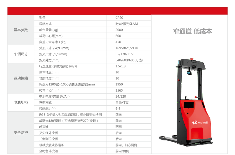 车型设计紧凑、适应窄通道叉取需求,可承载 极致的制造成本,超高的投资回报率,机器换人