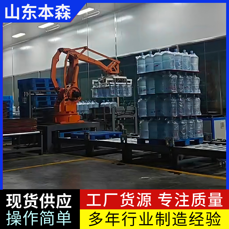 ·适应性和灵活性:机械臂可以根据不同的桶装水类型和码垛要求进行调整和编程,满足各种复杂的码垛任务。无论是小型桶装水的精细码垛,还是大型桶装水的重型码垛,机械臂都能胜任。