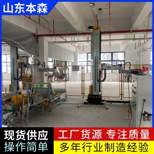 桶装食用油无人化立柱码垛机械手的工作原理基于先进的控制系统和机械结构。它通常由立柱、机械臂、抓手、驱动系统和控制系统等部分组成。在工作过程中,机械手通过视觉系统或传感器识别桶装食用油的位置和姿态,然后根据预设的码垛模式和轨迹,通过机械臂和抓手的协同运动,将桶装食用油从传送带上抓取并码放到指定的托盘上。码垛完成后,机械手会返回初始位置,等待下一次操作指令。