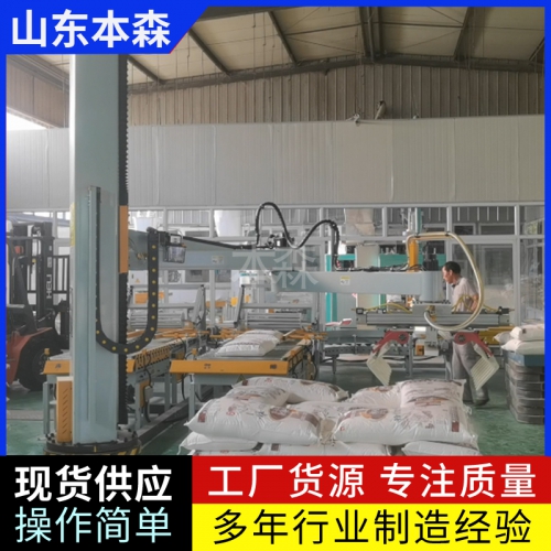 3.适应性强:立柱码垛机器人可以码垛箱子、袋子、桶装等多种物料的码垛和搬运。对于袋装工业碱等粉状颗粒状物料,机器人可以配备适合的抓手或夹具,确保稳定抓取和码放。
