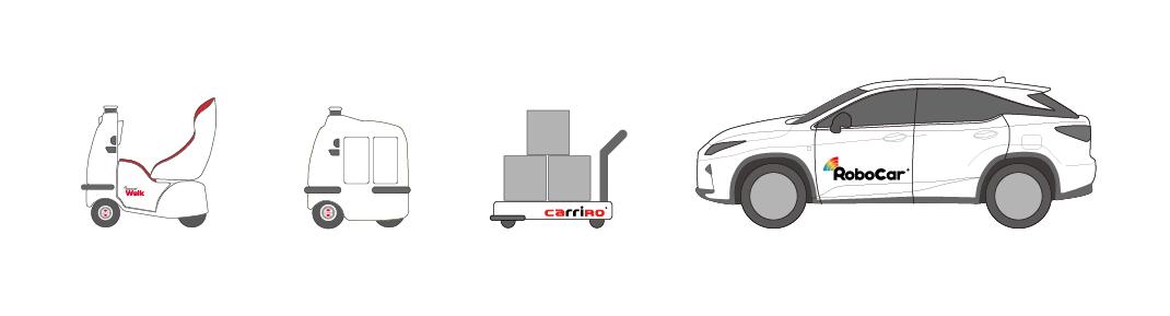 人的运动是“ RoboCar”,物的运动是“ CarriRo”,低速自动驾驶机器人“ RakuRo”,“ DeliRo”,“ PATORO”。