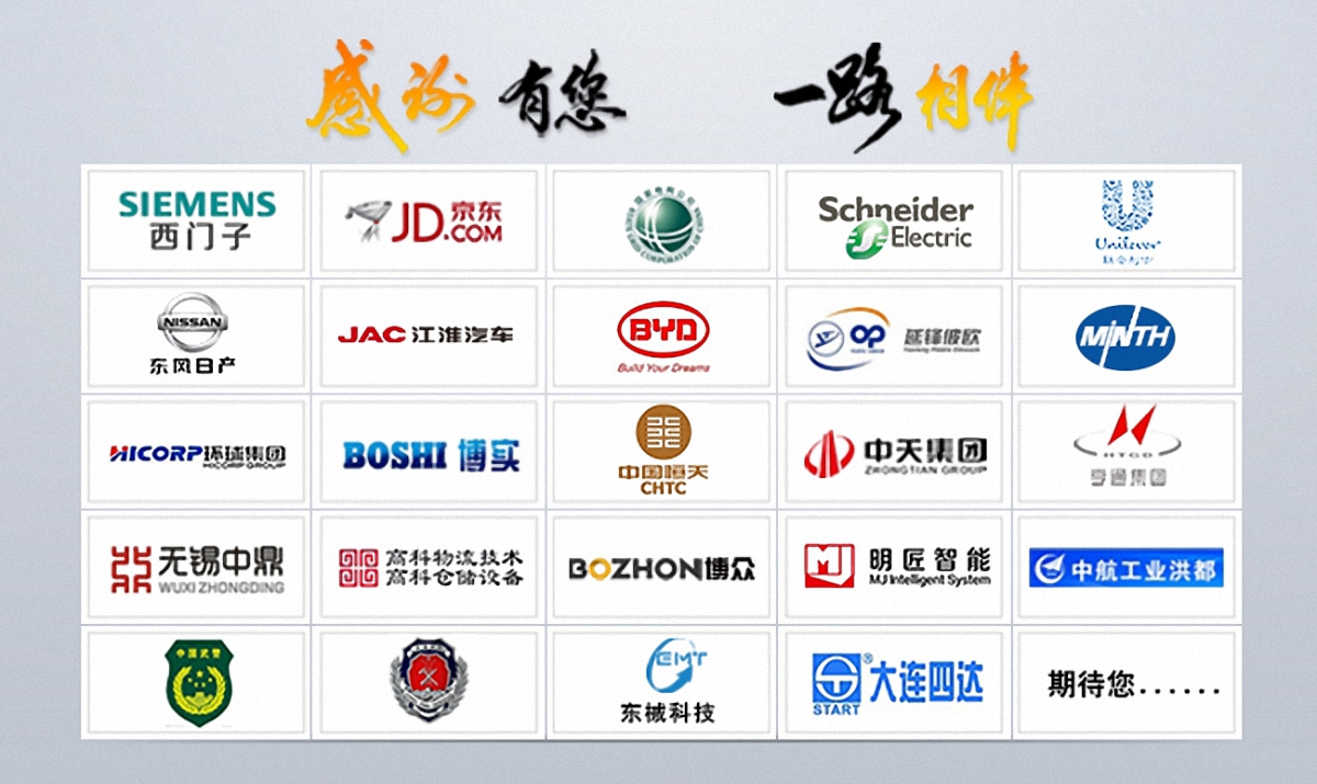 柯金AGV及相关产品,以卓越的性价比,领先的技术,可靠的产品赢得了广大客户的信赖,已经和多家知名企业形成战略合作及提供相应的产品服务,产品成功应用于 比亚迪集团,延锋彼欧,敏实集团,康明斯,京东集团,博实股份,环球集团,中航工业,中材集团,国家电网,武警水电,武警消防,德国菲尼克斯电气集团,亨通集团,哈尔滨机器人集团,北京高科,史陶比尔,无锡中鼎,恩欧凯,中原内配,北京航天航空大学等