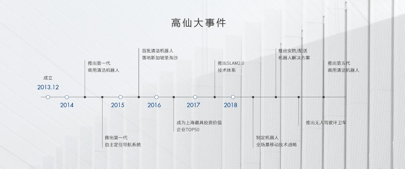 上海高仙自动化科技发展有限公司拥有全场景移动自主核心技术,广泛应用于低速无人驾驶车辆和服务机器人两大领域——前者以无人驾驶环卫车为代表,后者则深入落地商用清洁、安防巡检及楼宇配送三大领域。高仙机器人成立于2013年,是国内较早的服务机器人公司之一,也是少数能提供机器人核心底层技术的上游企业,目前全系列机器人产品在全球运行已超过300万公里。