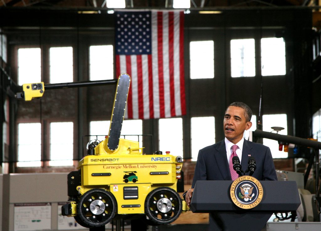 美国第 44 任总统巴拉克·奥巴马 (Barack Obama) 选择 NREC 作为宣布新国家机器人计划的地点。