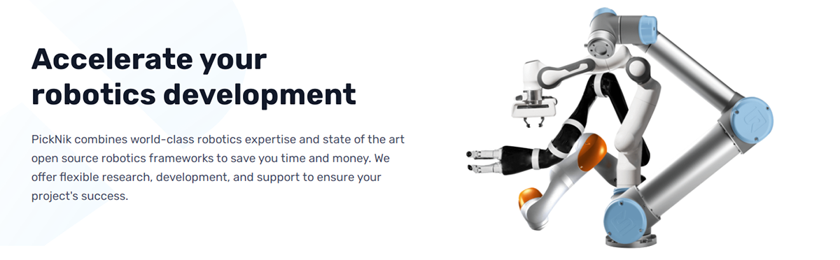 PickNik Robotics 帮助公司解决与开发高级机器人应用程序相关的技术、成本和时间挑战。美国宇航局、谷歌、亚马逊、Kindred 等主要机器人组织已与 PickNik Robotics 合作开发机器人应用程序。PickNik Robotics 还支持全球开源机器人运动并与之合作,并且是 MoveIt 的主要开发商。PickNik 成立于 2015 年,总部位于科罗拉多州博尔德。