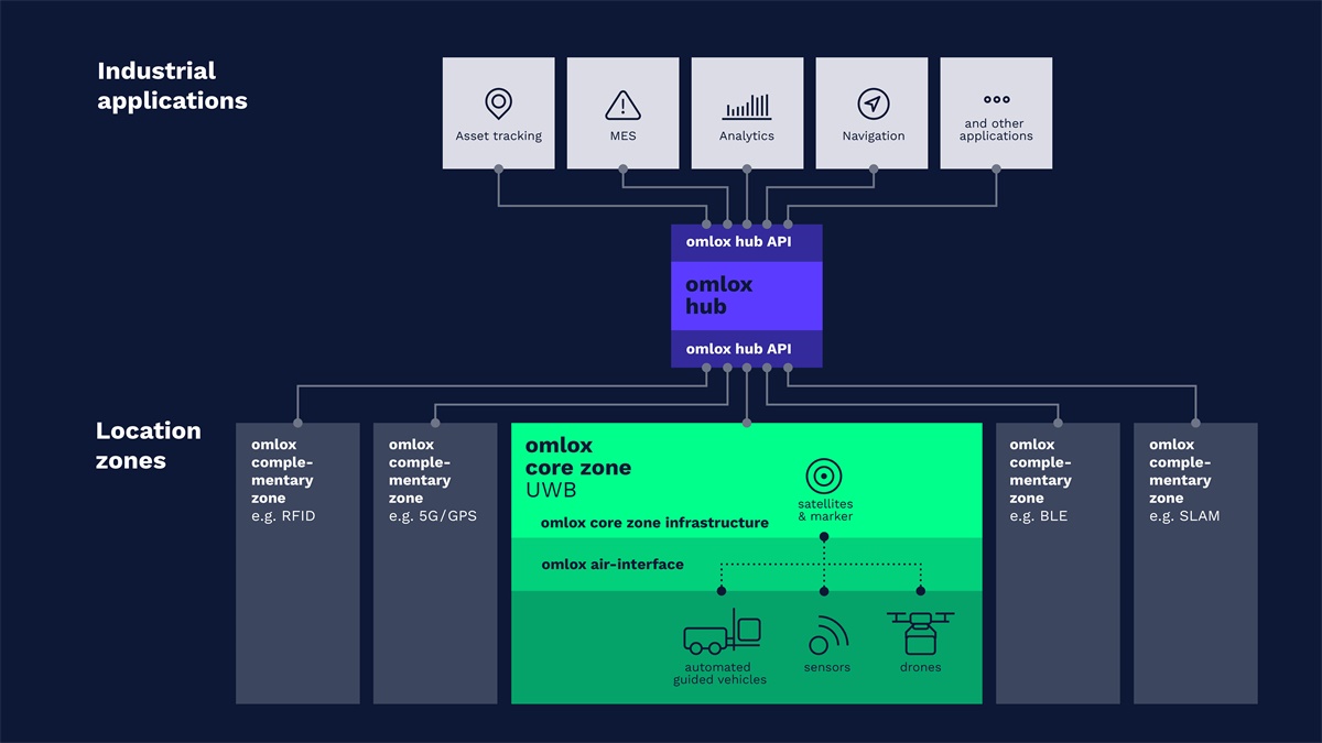 omlox 是世界上第一个开放式定位标准,它统一了来自所有定位技术的位置数据,并能够独立于供应商定位所有移动物体。在 AGV/AMR 的背景下,它补充了 VDA 5050 - 用于 AGV/AMR 和主控制(车队管理软件)之间通信的标准化接口。omlox 和 VDA 5050 共同确保了不同类型的 AGV/AMR 和车队控制器之间的互操作性。