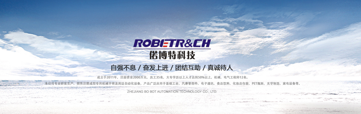 浙江偌博特自动化科技有限公司专业研发生产销售注塑机械手、六自由度工业机器人、视觉模具保护器、高效低速静音粉碎机等注塑周边自动化设备,为企业提供生产车间布局和自动化解决方案。产品广泛运用到各个行业,例如汽车、家电、工业设备、电子、通讯等。公司成立十多年来,本着高起点,高质量的品牌战略,多年来不断引进国内外技术装备,培养了大批高素质人才,为确保产品质量奠定了坚实基础,在国内拥有大中小客户数千家。在工业4.0的大背景下,偌博特可以为“智能工厂”和“智能生产”企业解决自动化改造问题,面对新世纪的发展机遇和挑战,“偌博特”全体员工正以其众志成城之心,团结在一起,在继承和发扬优秀传统的基础上,不断完善产品服务质量,不断研发自动化设备来满足客户的要求。锲而不舍,一如既往地以高质量产品,完善的售后服务来赢得客户肯定,携手国内外客户,共创未来!