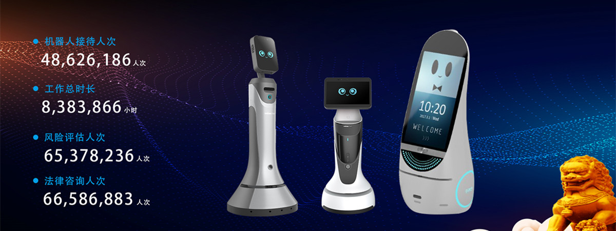 作为国内第一款应用于司法服务的智能机器人,依托强大的多能力融合及大数据处理能力,通过迭代升级,已具备分流引导、业务咨询、法律查询、定点讲解等多种功能,可完成电子读报、语音唤醒、虚拟导诉、自动寻路及规避障碍物等行为。
