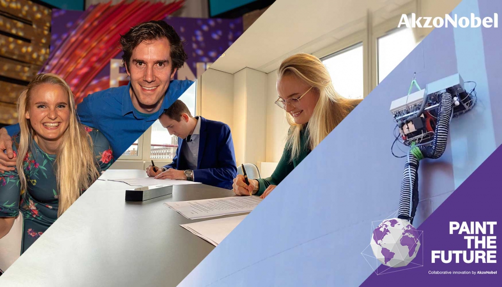 Qlayers 的自动化涂料解决方案是 2019 年 Paint the Future Startup Challenge 的获胜者,这促使 AkzoNobel 和 ECFG 投资联合合作,以改变工业涂料的应用。图中,Qlayers 首席执行官 Josefien Groot 和首席技术官 Ruben Geutjens。