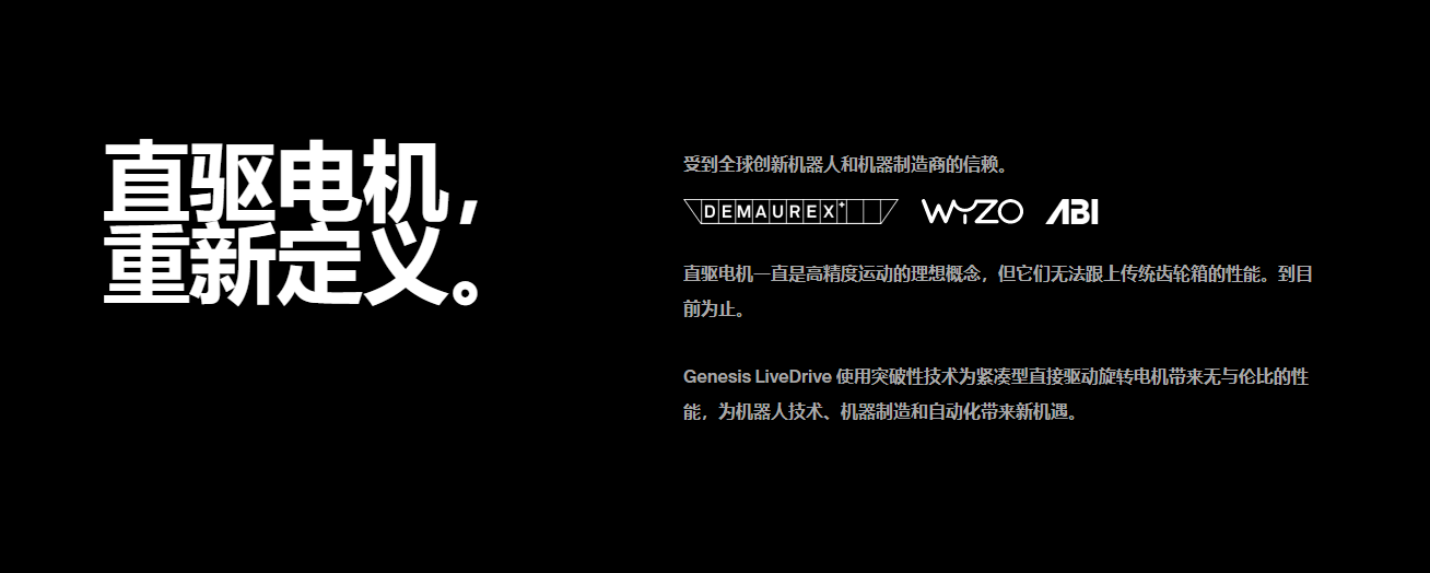 Genesis Robotics & Motion Technologies 在我们位于加拿大大温哥华的占地 2,000 米2的工厂内大规模设计、制作原型和生产直接驱动旋转电机。我们的创新团队在 12 周内将概念从设计转化为原型,大大缩短了我们客户的上市时间。