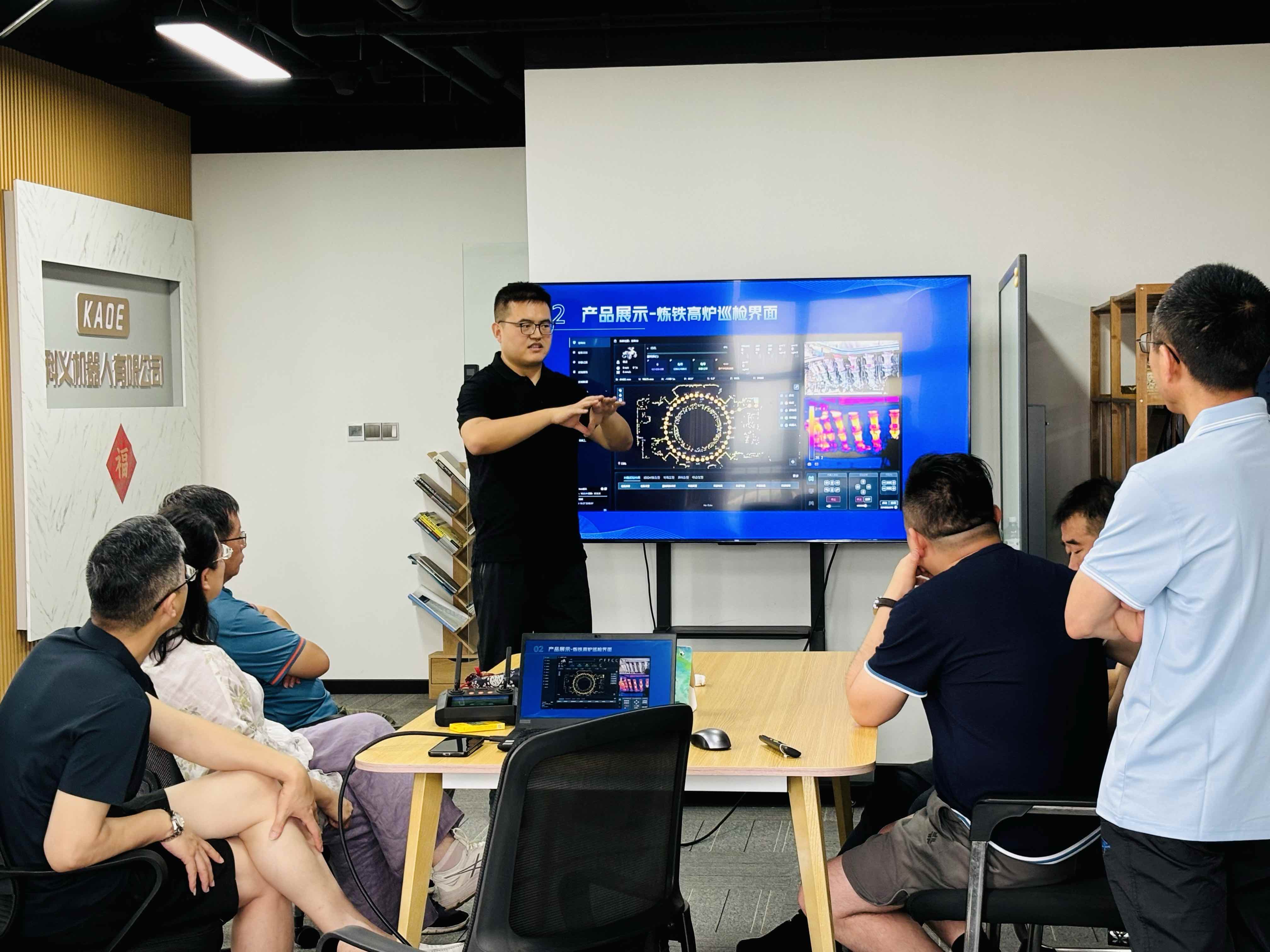 当日上午,在公司梁总的陪同下,调研团首先抵达技术展示中心。梁总以 “实物演示 + 数字孪生” 的形式,向领导们系统介绍了公司两大核心业务板块 —— 智能巡检机器人与视频行为分析系统的技术亮点与应用成效。
