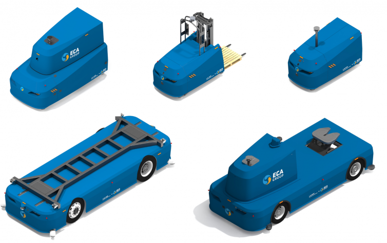 ECA集团设计、制造和工业化自动物流车辆(单位负载运输车、叉车、牵引车)作为重量在 1 到 20 吨之间的现成解决方案。